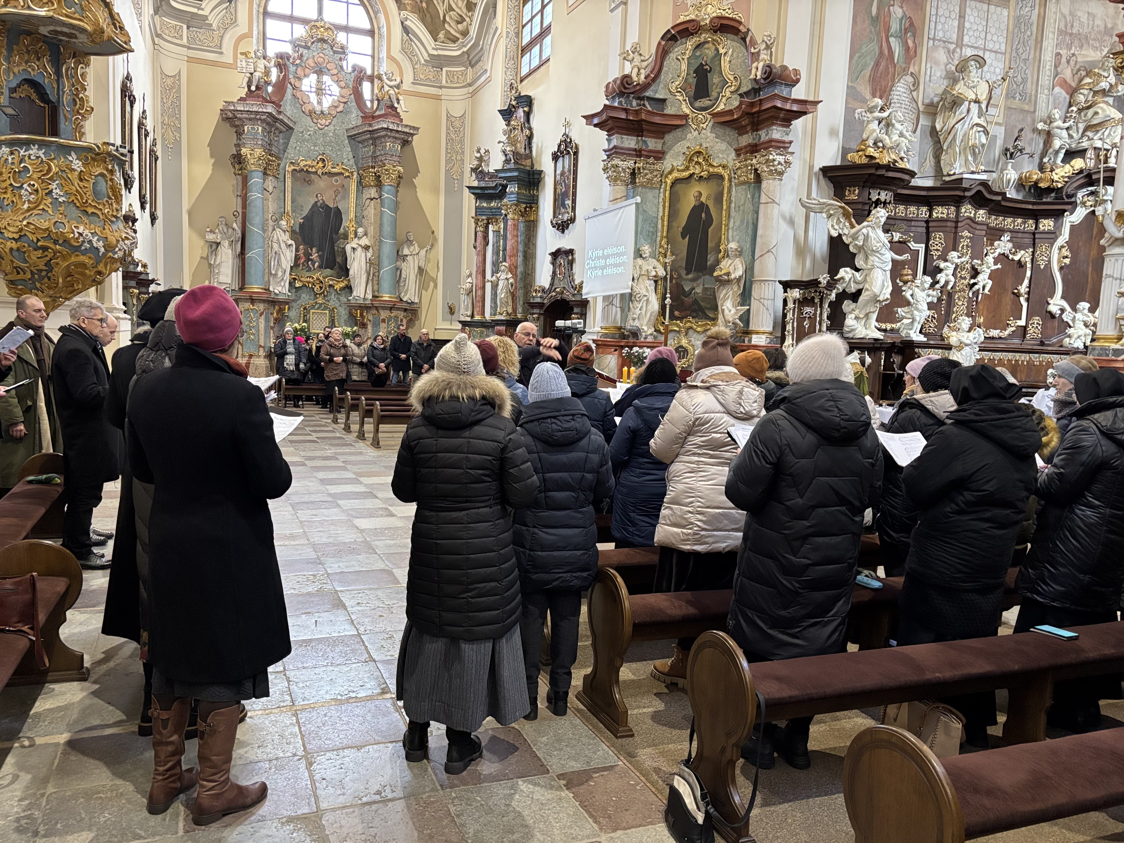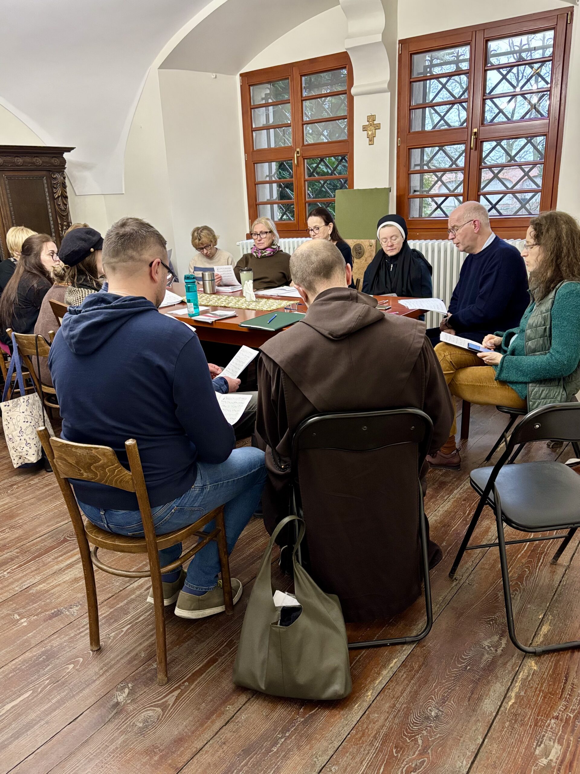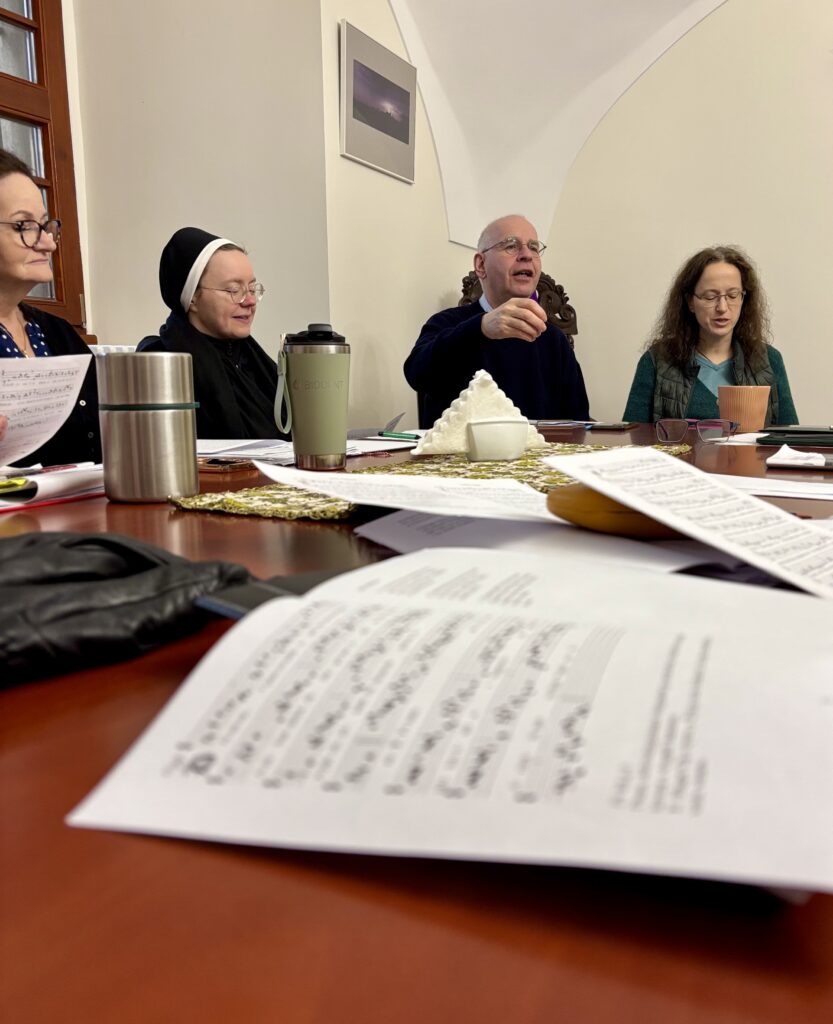 Z wielką radością przybyliśmy do Opactwa w Lubiniu, by pracować nad gregoriańskimi utworami ku czci św. Benedykta. Pierwsze słowa introitu: Gaudeamus omnes, nadały ton i kierunek naszym wysiłkom. Przewodził nam Claude Pateau dyrektor Schola Saint Grégoire Międzynarodowej Akademii Muzyki Kościelnej w Le Mans (Francja). Dzięki jego wskazówkom podejmowaliśmy trud wchodzenia w głąb interpretacji muzycznej tekstu i niuansów wykonawczych służących przemianie śpiewu w modlitwę. Nasz czas, po benedyktyńsku dzieliliśmy na pracę, modlitwę i odpoczynek. Poza zajęciami warsztatowymi mieliśmy okazję uczestniczyć w liturgii godzin, a zwieńczeniem naszych wysiłków był śpiew na mszy świętej w niedzielę w opackim kościele. Do kawy na zakończenie warsztatów, członkowie Lubińskiej Scholi, przygotowali wspaniałe ciasta i pączki! Po uczcie duchowej był, więc czas na agapę i ucztę dla podniebienia. Doskonała równowaga 🙂 Możemy powtórzyć za psalmistą: Zobaczcie jak jest dobrze przebywać razem z braćmi! Dziękujemy opactwu za miłą gościnę, a wszystkim uczestnikom i prowadzącym zajęcia, za poświęcony czas i wysiłek, który mamy nadzieję przyniesie duchowe owoce!