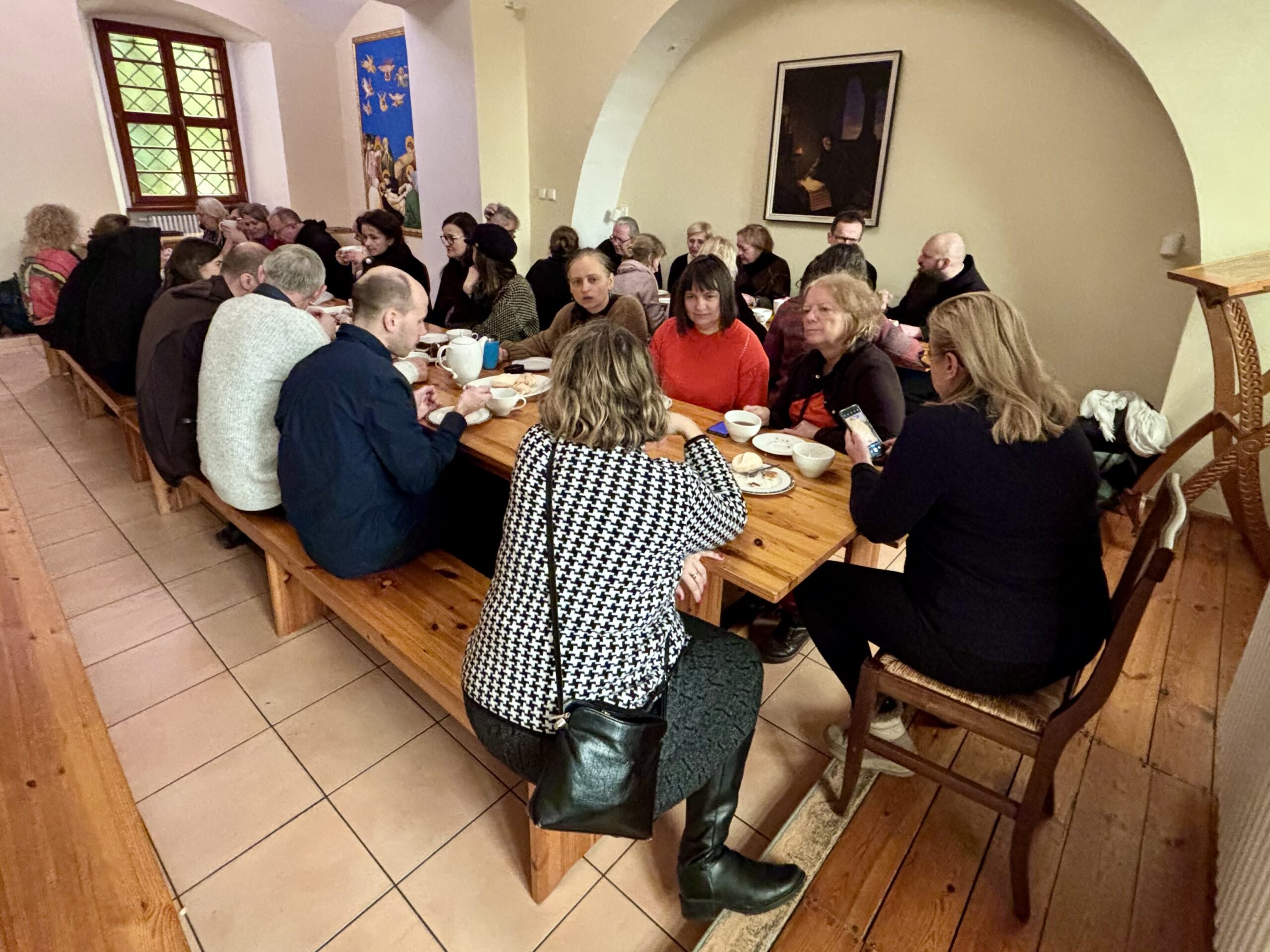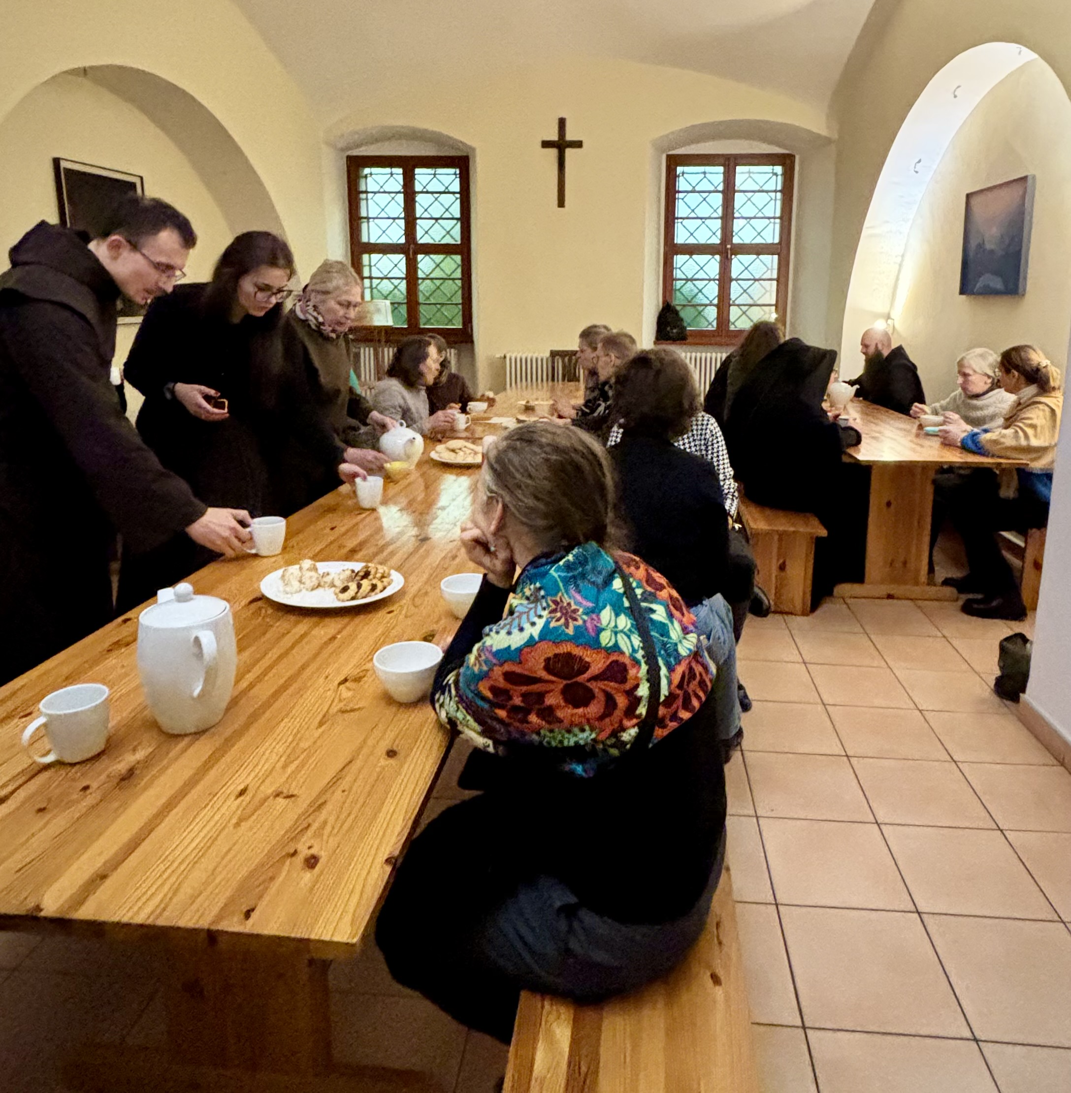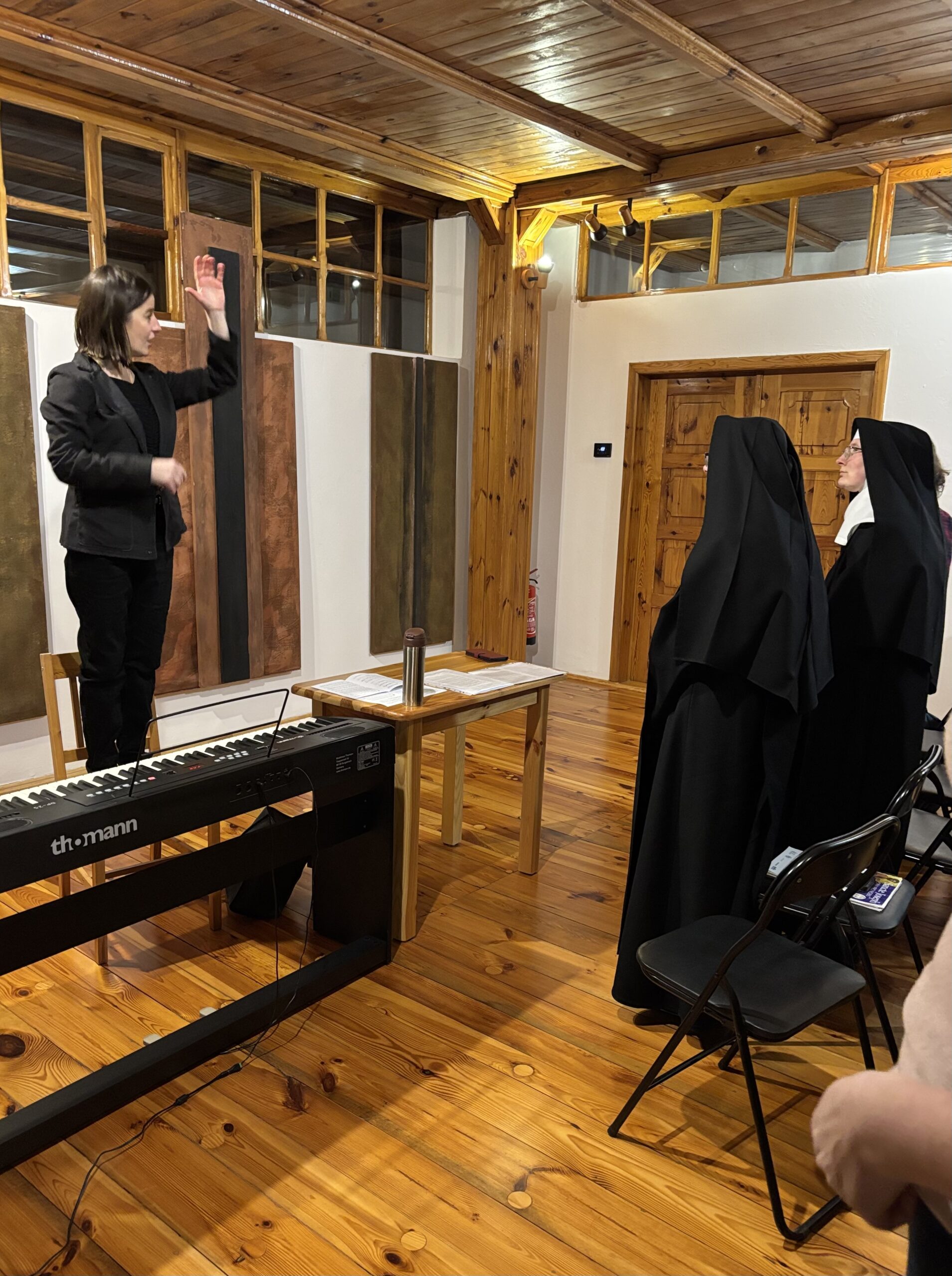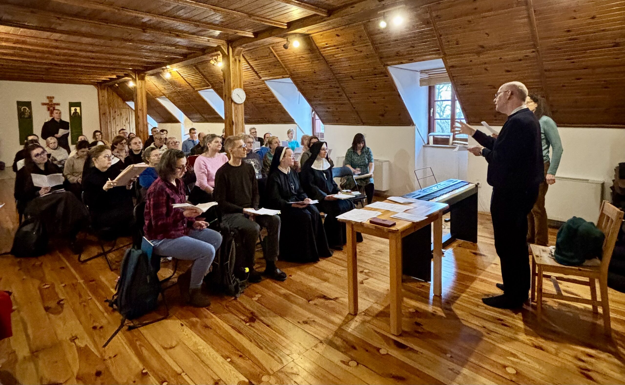 Z wielką radością przybyliśmy do Opactwa w Lubiniu, by pracować nad gregoriańskimi utworami ku czci św. Benedykta. Pierwsze słowa introitu: Gaudeamus omnes, nadały ton i kierunek naszym wysiłkom. Przewodził nam Claude Pateau dyrektor Schola Saint Grégoire Międzynarodowej Akademii Muzyki Kościelnej w Le Mans (Francja). Dzięki jego wskazówkom podejmowaliśmy trud wchodzenia w głąb interpretacji muzycznej tekstu i niuansów wykonawczych służących przemianie śpiewu w modlitwę. Nasz czas, po benedyktyńsku dzieliliśmy na pracę, modlitwę i odpoczynek. Poza zajęciami warsztatowymi mieliśmy okazję uczestniczyć w liturgii godzin, a zwieńczeniem naszych wysiłków był śpiew na mszy świętej w niedzielę w opackim kościele. Do kawy na zakończenie warsztatów, członkowie Lubińskiej Scholi, przygotowali wspaniałe ciasta i pączki! Po uczcie duchowej był, więc czas na agapę i ucztę dla podniebienia. Doskonała równowaga 🙂 Możemy powtórzyć za psalmistą: Zobaczcie jak jest dobrze przebywać razem z braćmi! Dziękujemy opactwu za miłą gościnę, a wszystkim uczestnikom i prowadzącym zajęcia, za poświęcony czas i wysiłek, który mamy nadzieję przyniesie duchowe owoce!
