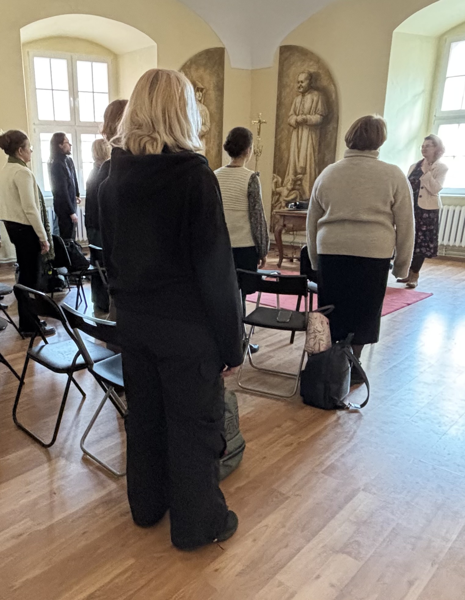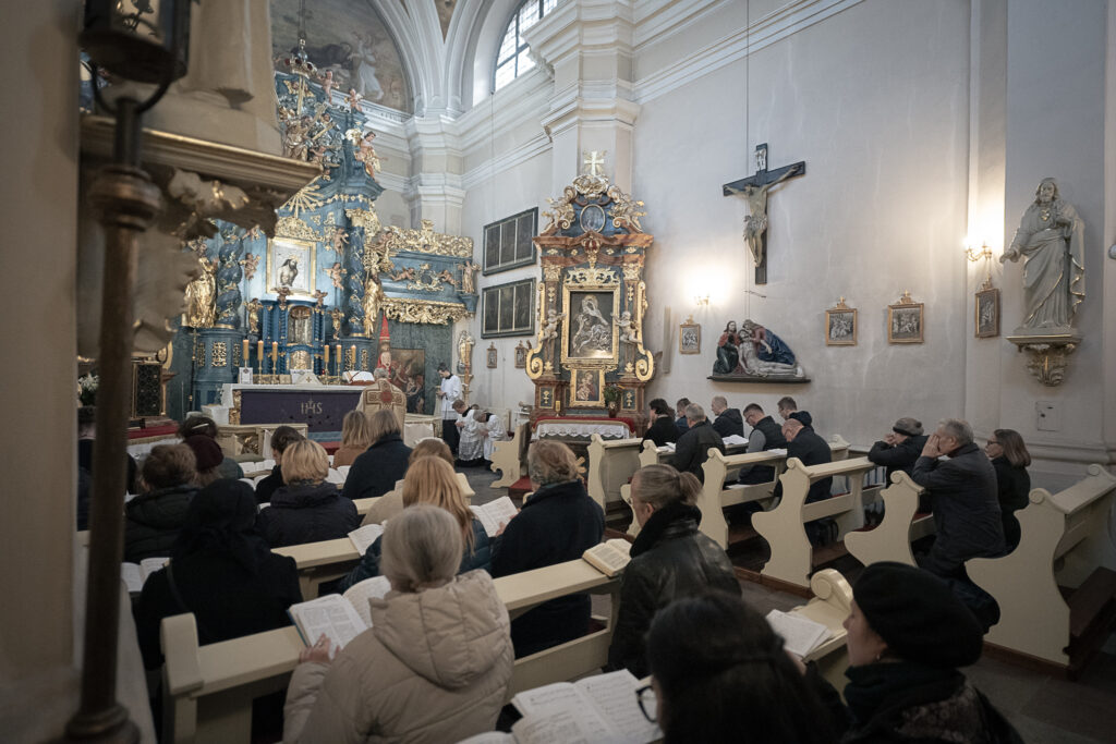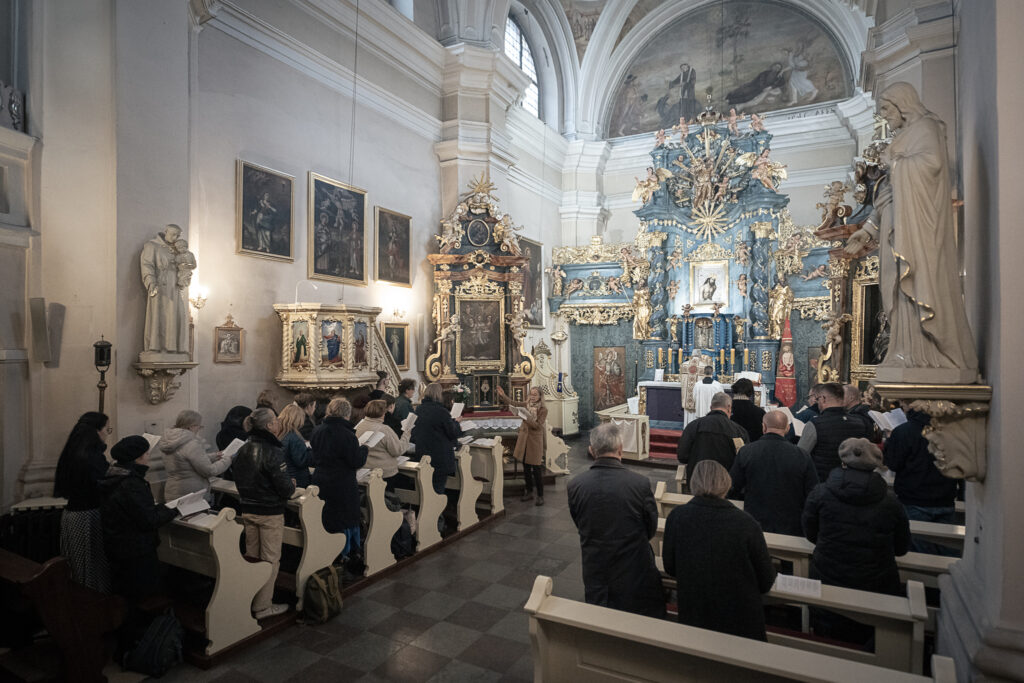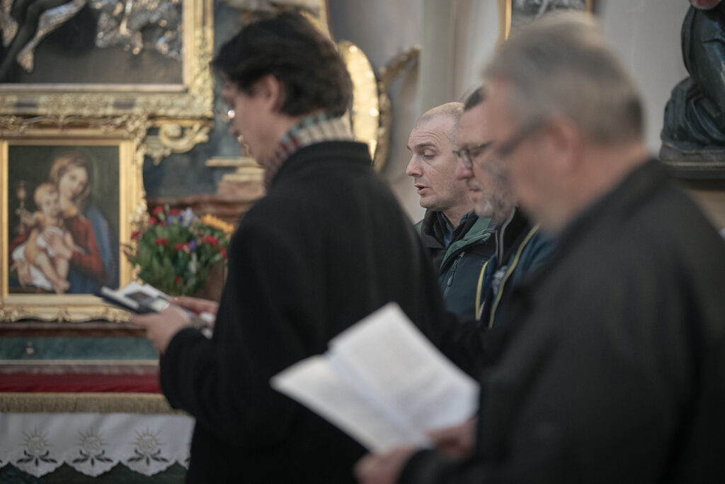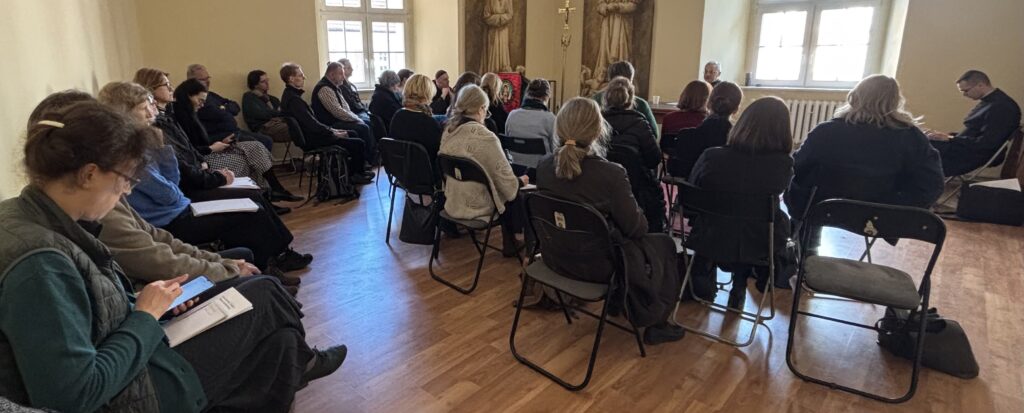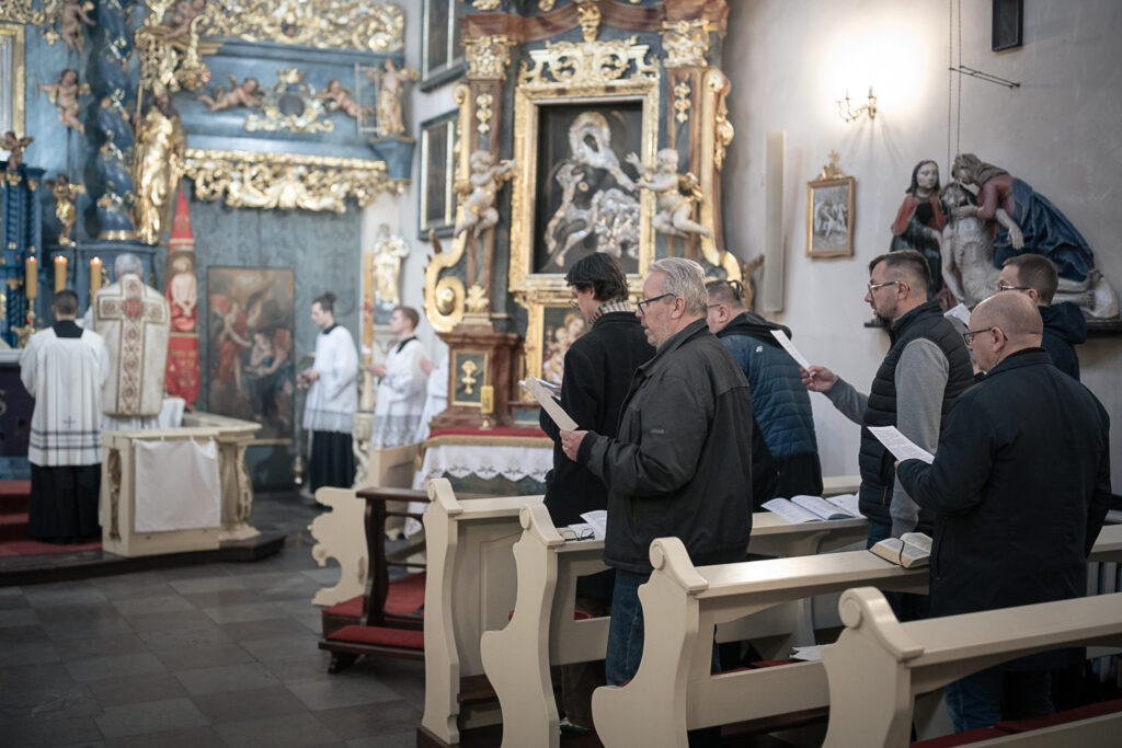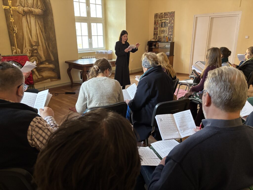 21 marca, po raz pierwszy w naszej szkolnej historii, spotkanie kursowe przypadło we wspomnienie św. Benedykta❤️ Wyśpiewaliśmy więc Gaudeamus omnes, na mszy św., którą w Sanktuarium Krwi Pańskiej, celebrował ks.dr hab. Janusz Lewandowicz (Dyrektor Instututu Studiów Wyższych Archidiecezji Łódzkiej). W czasie zajęć powtórzyliśmy propria mszalne przygotowane na warsztatach w Opactwie Benedyktynów w Lubiniu, nauczyliśmy się hymnu Gemma caelestis i poćwiczyliśmy psalmodię. Grupa początkująca pracowała też nad akcentem słowa łacińskiego, a grupy bardziej zaawansowane zgłębiały świat Tritusa. Był też czas na świąteczną kawę i ciasto (pyszne), które upiekły nasze nieocenione kursantki ❤️. Przygotowaniem do śpiewu słowa i uczestnictwa we mszy św. był wykład ks. Janusza Lewandowicza „Ucieleśnienie Słowa w Piśmie”. Piękny dzień! Deo Gratias!